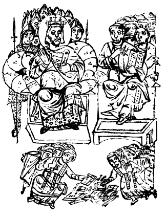 The image on the front cover is adapted from an illustration in a northern Italian compendium of canon law (c. 825). It depicts emperor Constantine and the Catholic bishops at the Council of Nicaea (325AD) overseeing the destruction of books that had been declared heretical.